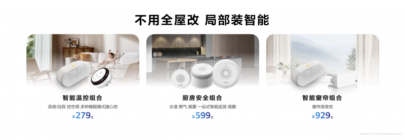 让主动智能体验走进千家万户,离不开丰富的产品矩阵与解决方案。鸿蒙智联生态汇聚合作品牌3200余家,覆盖品类400余种,丰富生态产品在华为智慧生活APP中可查可购,为消费者带来种类丰富、方便购买、物有所值的智能家居产品。针对旧房改造人群需求,华为鸿蒙智家推出了后装解决方案三档套餐,包括9999元尝鲜组合、25999元标准组合、49999元专业组合,覆盖全屋智能基础需求和进阶体验。同时提供智能温控组合、厨房安全组合、智能窗帘组合等局部入门套装,百元级价格即可实现局部改造,大幅降低体验门槛,让智能生活从一个场景轻松开启。